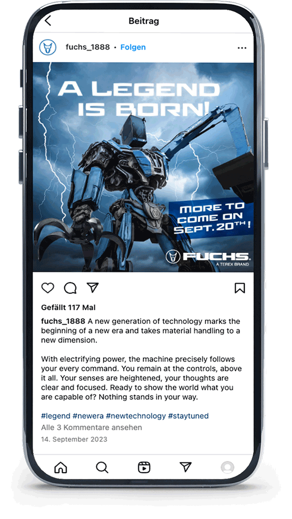 Auf Social Media erzeugen wir mit emotionalen Texten eine Welle der Neugier. Die Maschine bleibt vorerst im Schatten, während die Titanen das Licht der Vorfreude erhellen. Eine einzigartige Inszenierung, die die Kraft der Maschine mit jeder faszinierenden Grafik unterstreicht.